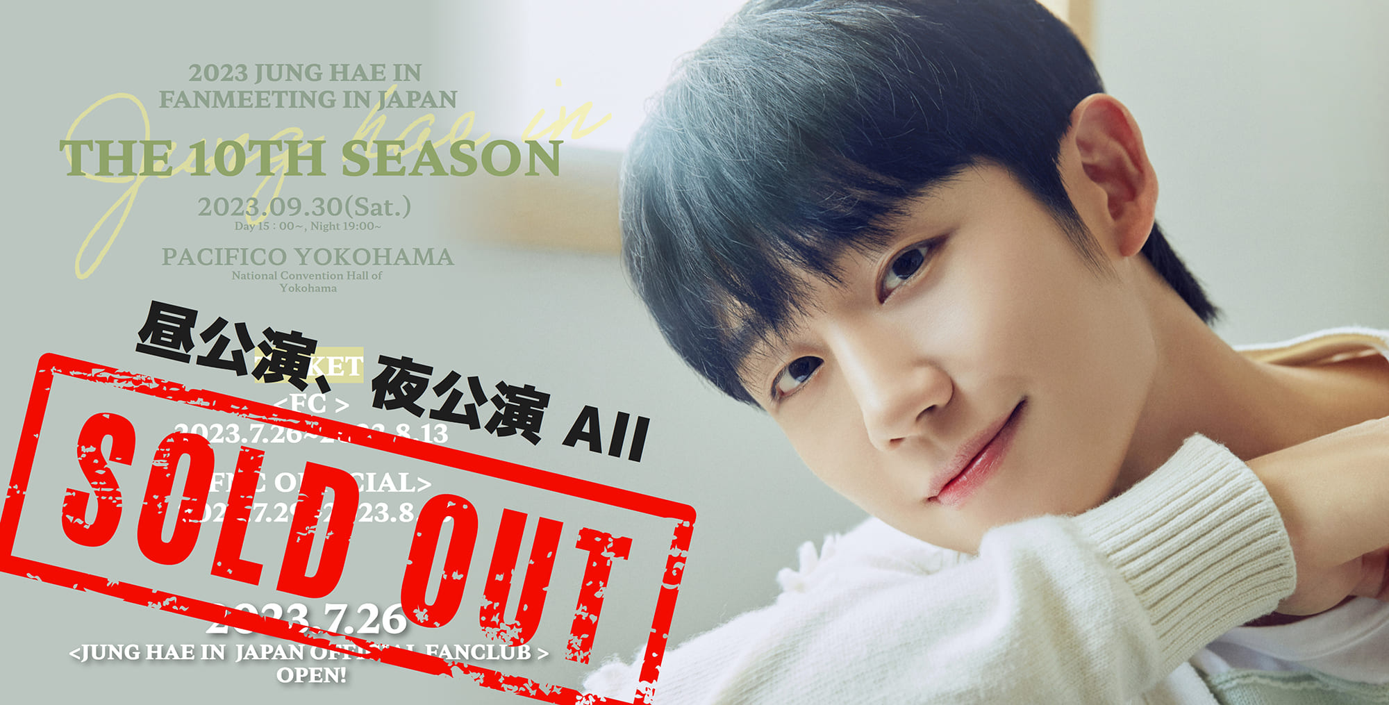 本日18:00より「2023 JUNG HAE IN FANMEETING IN JAPAN ~ THE 10TH SEASON ~」FNCオフィシャル先行の抽選結果発表&入金受付開始!